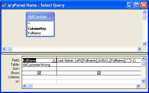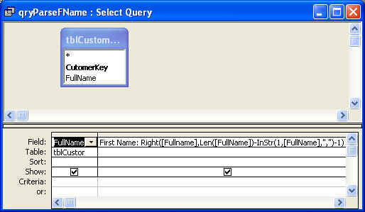 [FirstName] (our FullName field). Then, the function Left