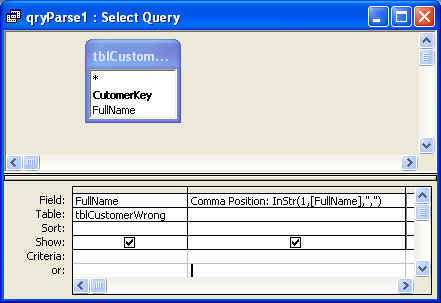 Here is an example of a query using the function InStr to