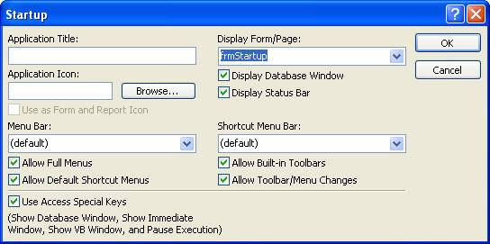 applications. My startup form (frmStartup) has only one purpose in life: To kickoff the startup code,