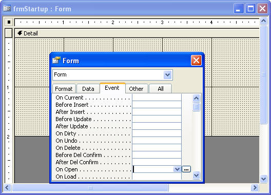 My on open event code in the form is very simple - it calls another routine named "startup".